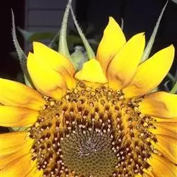 总苞片多层,叶质,覆瓦状排列,被长硬毛,夏季开花,花序边缘生中性的黄色舌状花,不结实。花序中部为两性管状花,棕色或紫色,能结实。矩卵形瘦果,果皮木质化,灰色或黑色,称葵花籽。 [1-2]