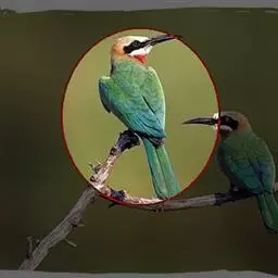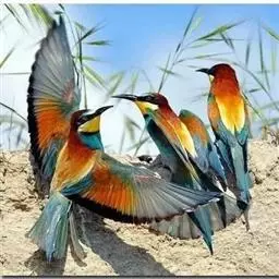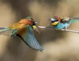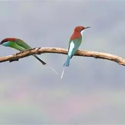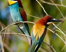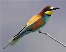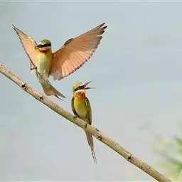 蓝颊蜂虎:是蜂虎科、蜂虎属的鸟类,共有2个亚种。体长27-33厘米,翼展46-49厘米,…