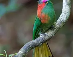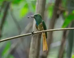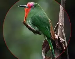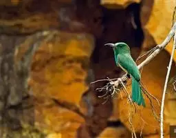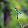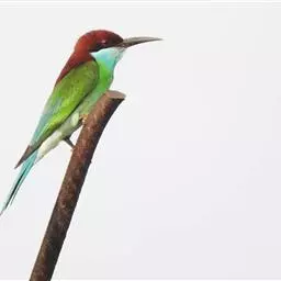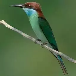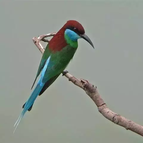 栗喉蜂虎是蜂虎科蜂虎属的鸟类。有热带鸟类羽毛艳丽的特征:喉部是栗红色的,黑色的过眼纹,…
