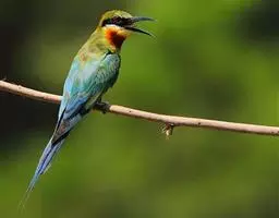 蓝喉蜂是蜂虎科蜂虎属鸟类。体长26-28厘米,嘴长而弯曲,有明显细长的中央尾羽。…