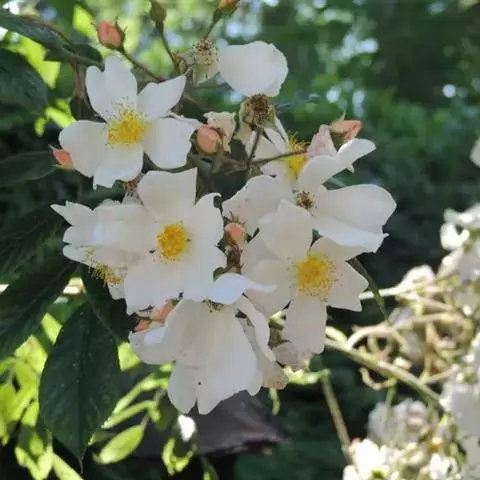 白蔷薇:直立灌木,高约2米;小枝有不等钩状皮刺,有时混有刺毛。小叶通常5,稀7,宽椭圆形或卵形,…