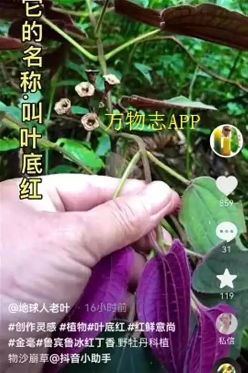 叶底红(原变种)叶下红(浙江),江南野海棠、大毛蛇,血还魂,还魂红、沙崩草(广西),假紫苏(广东),野海棠(中国高等植物图鉴)图版43:1-5
