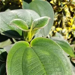 叶片坚纸质,心形、椭圆状心形至卵状心形,顶端短渐尖或钝急尖,基部圆形至心形,长(4.5-)7-10(-13.5)厘米,宽 (3-)5-5.5(-10)厘米,边缘具细重齿牙及缘毛和短柔毛,基出脉7-9,近边缘的两条不甚明显,两面被疏长柔毛及柔毛,背面以脉上较多,叶面仅中脉微凹,背面基出脉及侧脉隆起或微隆起;叶柄长2.5-5厘米。