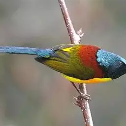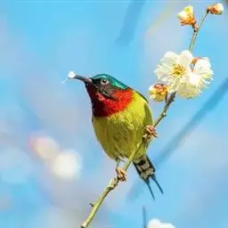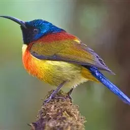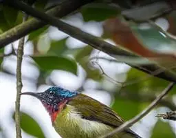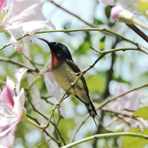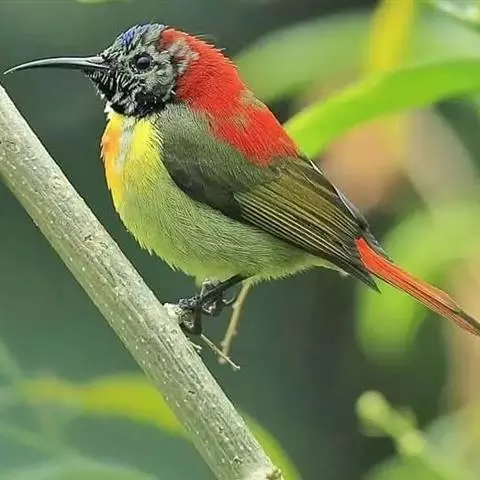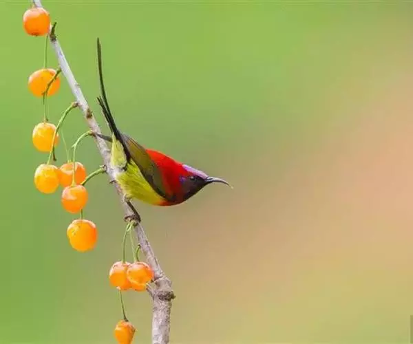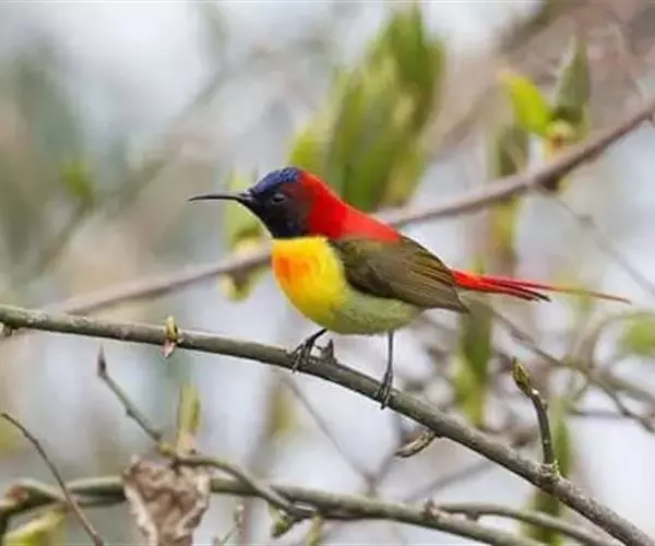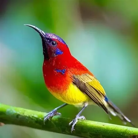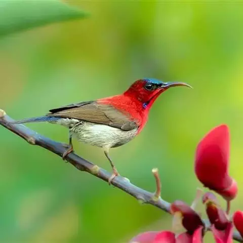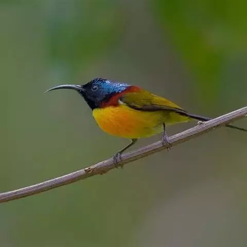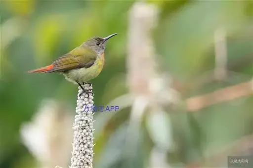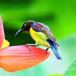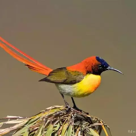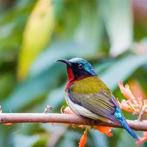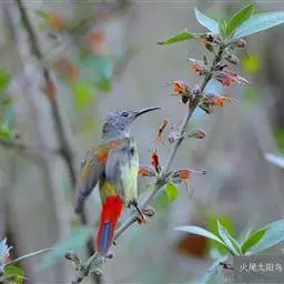 火尾太阳鸟小巧玲珑,羽毛鲜艳美丽,活鸟可供观赏,羽毛供装饰,也可作羽毛画。
