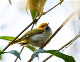雌鸟上体灰绿或橄榄黄绿色,背部较鲜亮,腰和尾上覆羽缀有黄色,两翅与雄鸟同色。中央尾羽棕褐色,不特性延长,其上隐现暗色横斑,外侧尾羽内翈黑褐色,外翈羽缘棕褐色,羽端淡色。颏、喉、胸灰绿色,其余下体黄绿色。