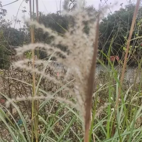 荻(学名:Triarrhena sacchariflora (Maxim. ) Nakai )为禾本科,荻属多年生草本植物。匍匐根状茎,秆直立,高可达1.5米,直径约5毫米,节生柔毛。叶鞘无毛,叶舌短,具纤毛;叶片扁平,宽线形,边缘锯齿状粗糙,基部常收缩成柄,粗壮。圆锥花序疏展成伞房状,主轴无毛,腋间生柔毛,小穗柄顶端稍膨大,小穗线状披针形,成熟后带褐色,基盘具长为小穗2倍的丝状柔毛;顶端膜质长渐尖,边缘和背部具长柔毛;颖果长圆形,8-10月开花结果。