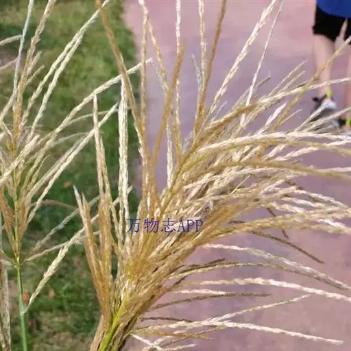 圆锥花序疏展成伞房状,长10-20厘米,宽约10厘米;主轴无毛,具10-20枚较细弱的分枝,腋间生柔毛,直立而后开展;总状花序轴节间长4-8毫米,或具短柔毛;小穗柄顶端稍膨大,基部腋间常生有柔毛,短柄长1-2毫米,长柄长3-5毫米;小穗线状披针形,长5-5.5毫米,成熟后带褐色,基盘具长为小穗2倍的丝状柔毛;第一颖2脊间具1脉或无脉,顶端膜质长渐尖,边缘和背部具长柔毛;第二颖与第一颖近等长,顶端渐尖,与边缘皆为膜质,并具纤毛,有3脉,背部无毛或有少数长柔毛;第一外稃稍短于颖,先端尖,具纤毛;第二外稃狭窄披针形,短于颖片的1/4,顶端尖,具小纤毛,无脉或具1脉,稀有1芒状尖头;第二内稃长约为外稃之半,具纤毛;雄蕊3枚,花药长约2.5毫米;柱头紫黑色,自小穗中部以下的两侧伸出。颖果长圆形,长1.5毫米。染色体2n=38-40,57,74,76,95(Adati,Mitsuishi,1956,1958)。花果期8-10月。