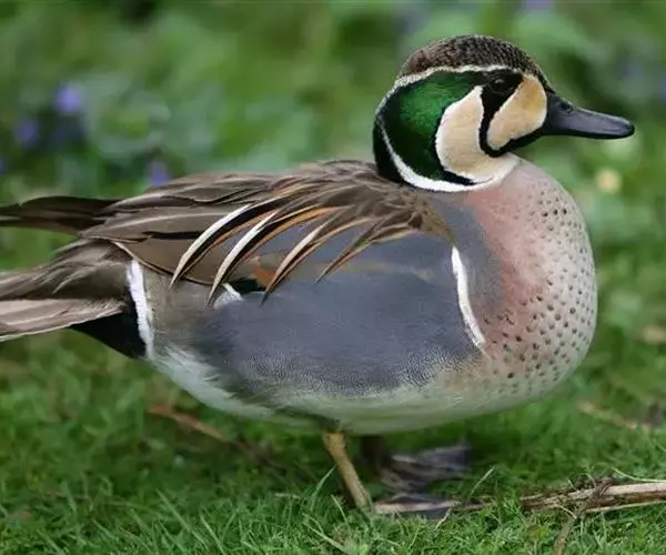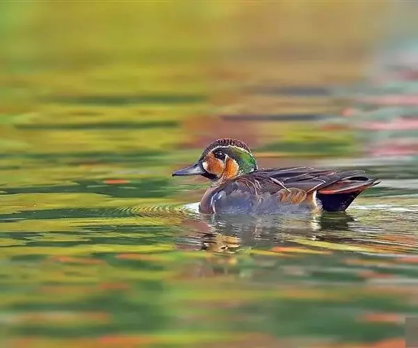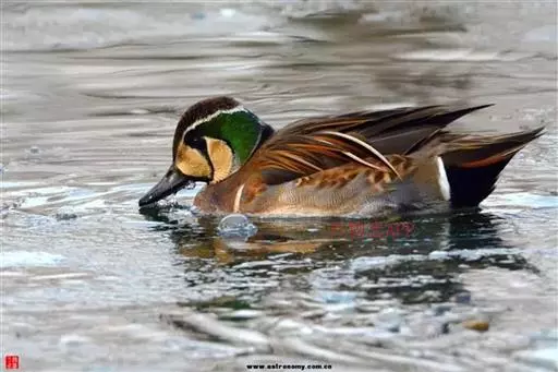 花脸鸭(学名:Anas formosa)属小型鸭类,个体较绿翅鸭稍大,而较针尾鸭稍小。体长37-44厘米,体重0.5千克左右。雄鸭繁殖羽极为艳丽,特别是脸部由黄、绿、黑、白等多种色彩组成的花斑状极为醒目。胸侧和尾基两侧各有一条垂直白带,可以明显区别于其他野鸭。非繁殖羽似雌鸟。花脸鸭是一种喜欢集群的鸭类,特别是冬季常集成大群,也常和别的鸭混群。白天常成小群或与其他野鸭混群游泳或漂浮于开阔的水面休息,夜晚则成群飞往附近田野、沟渠或湖边浅水处寻食。主要以轮叶藻、柳叶藻、菱角、水草等各类水生植物的芽、嫩叶、果实和种子为食。繁殖于整个东西伯利亚地区,西到俄罗斯安加拉河,北到北极海岸,南到贝加尔湖,东到堪察加半岛。越冬日本南部,偶尔到印度东北部地区。