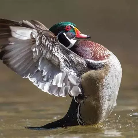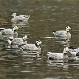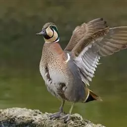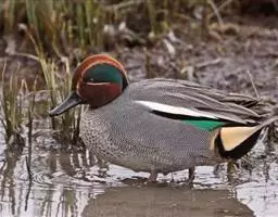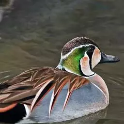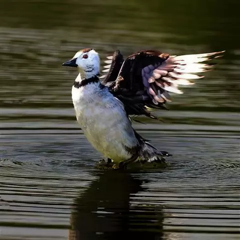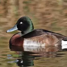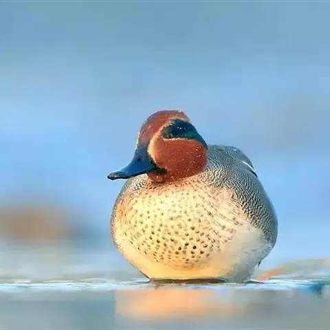 花脸鸭 花脸鸭是一种喜欢集群的鸭类,特别是冬季常集成大群,也常和别的鸭混群。繁殖期主要栖息在泰加林或苔原带的沼泽、河口三角洲、湖泊和水塘中,非繁殖期主要栖息于各种淡水或咸水水域,包括湖泊、江河、水库、水塘、沼泽、河湾以及农田原野等各类生境。