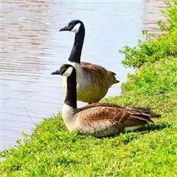 黑雁是雁形目鸭科黑雁属鸟类,又称黑鹅。头、颈、胸、嘴及脚黑褐色;虹膜褐色;背及两翼灰褐色;尾下覆羽白色;胸侧及胁部多近白色纹;颈部两侧各具一个特征性白色横纹,在颈前后断开,未能联成颈环。幼鸟颈部无白斑,而翅上多白色横纹。黑雁繁殖于北美洲、西伯利亚极地的苔原冻土带,越冬于南方沿海的草地及河口。在中国安徽也能见其身影。主要栖息在海湾、海港及河口等地,在冬季里大多出现在有耐碱植物生长的湖泊和水库周围,也出现在周围地势低洼的咸水湖和沿海地区,偶尔还出现在农田地里。性活跃,喜集群,常成群活动和栖息。主要以植物性食物为食。繁殖期在6-8月,雌鸟孵卵,雄鸟通常在距巢100米以内范围内守候警诫。雌鸟孵卵时常将头和颈朝地面平伸出去以降低高度。孵化期为22-28天。黑雁被列入中国林业局2000年8月1日发布的《国家保护的有益的或者有重要经济、科学研究价值的陆生野生动物名