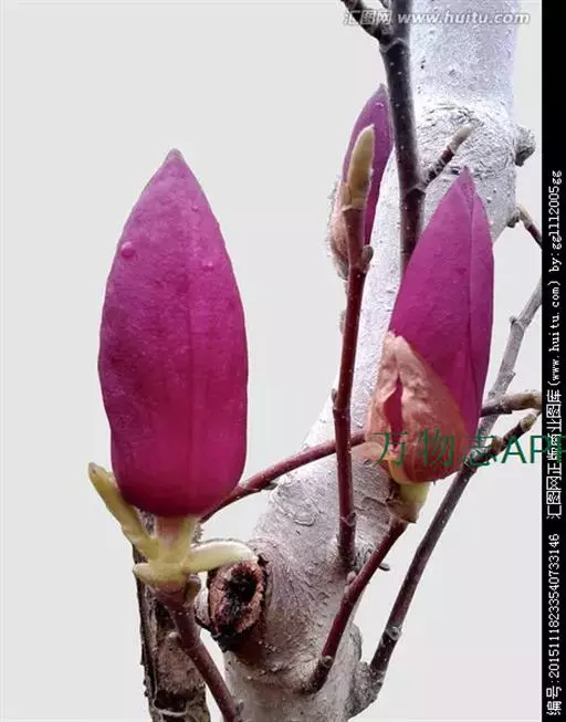 辛夷,中药名。又名木兰、紫玉兰,为中国特有植物,分布在中国云南、福建、湖北、四川等地,生长于海拔300米至1600米的地区,一般生长在山坡林缘。紫玉兰花朵艳丽怡人,芳香淡雅,孤 植或丛植都很美观,树形婀娜,枝繁花茂,是优良的庭园、街道绿化植物,为中国有2000多年历史的传统花卉和中药。紫玉兰列入《世界自然保护联盟》 (IUCN)ver 3.2:2009年植物红色名录。且不易移植和养护,是非常珍贵的花木。