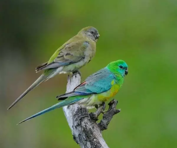 红腰鹦鹉(学名:Psephotus haematonotus)是属于鹦鹉科的一种典型的攀禽。鸟喙强劲有力,喙钩曲,上颌具有可活动关节,喙基部具有腊膜。肌肉质舌厚。脚短,强大,对趾型,两趾向前两趾向后,适合抓握和攀援生活。鸟体主要是绿色,特征是尾部有一块红斑。成熟的雄鸟颜色较明亮,红色部分也较鲜艳,而雌鸟的体色则较黯淡。