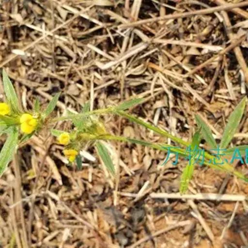 荚果具1荚节,卵形,长2-3毫米,宽1.8毫米,无毛或近顶端被短柔毛,喙很小,长0.1-0.5毫米,内弯;种子灰褐色,扁椭圆形,近种脐具喙或尖头,长2.2毫米,宽1.5毫米。