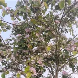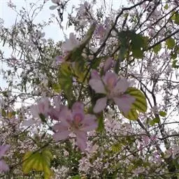 洋紫荆:落叶乔木;树皮暗褐色,近光滑;幼嫩部分常被灰色短柔毛;枝广展,硬而稍呈之字曲折,无毛。叶近…
