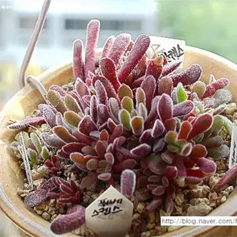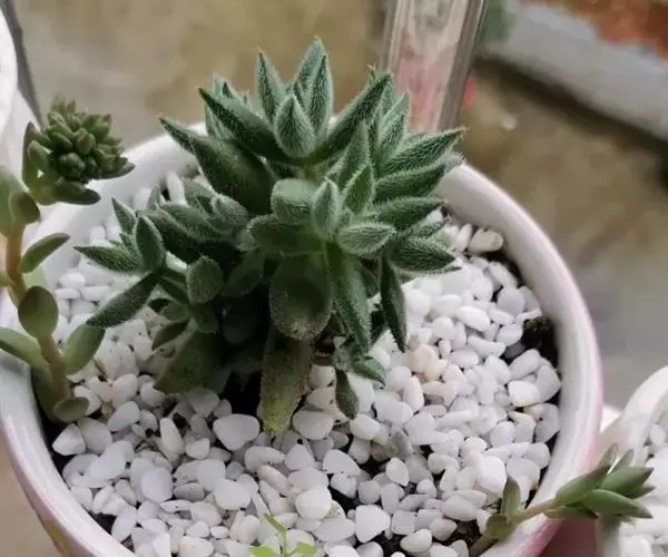 绒针(Crassula mesembrianthoides subsp. hispida),又名银箭,景天科,青锁龙属多肉植物,喜温暖干燥和阳光充足的环境,怕低温和霜雪,耐半阴,无明显休眠期。夏季高温有短暂休眠,冬季为其生长期。