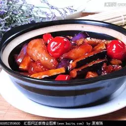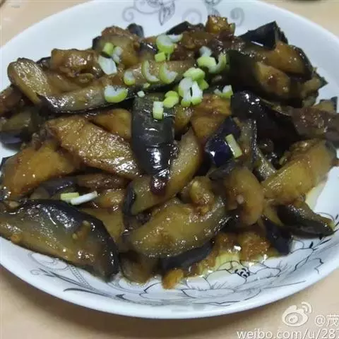 【配方】茄子5个,猪肉70克,酱油10克。