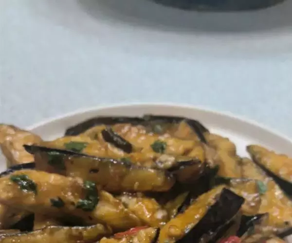 特 点: 茄子软烂,味道香美。 制作关键: 茄子切块后,放在太阳光下先晾晒1~2小时,这样炸时省油。炸茄子要用旺火热油炸,炸时要勤翻动,以免炸糊,但也不要未炸上色就捞出。