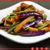 辅料:豆腐干30克,冬笋25克,香菜3克 素烧茄子