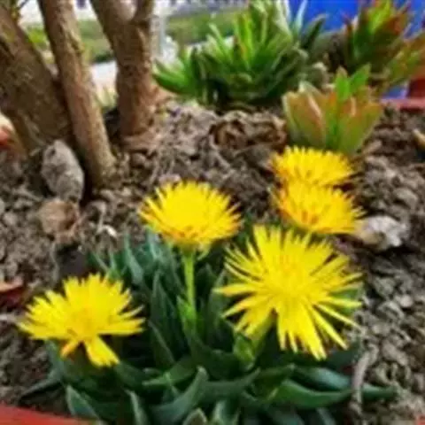 照波,番杏科多肉植物、此种生长较快,栽培容易,细长的浓绿色叶3厘米左右,开黄色花。…