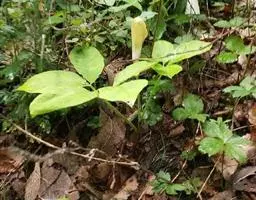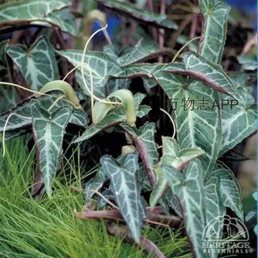 花序柄短于叶柄,长3.7-18厘米。佛焰苞绿色,淡黄带紫色或青紫色,长3-7厘米,管部长1.2-2厘米,粗4-7毫米,不明显过渡为檐部;檐部椭圆形,长1.8-4.5厘米,钝或锐尖,直立或稍下弯,人为展平宽1.2-3厘米。肉穗花序:雌花序1-1.2厘米,雄花序长5-7毫米;附属器青绿色,长6.5-20厘米,渐狭为线形,略成之字形上升。花期3-6月,果8-9月成熟。