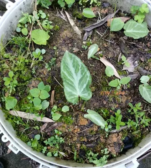 外植体的接种培养:取野生临安滴水珠,先用自来水洗去滴水珠上的泥土,再用洗衣粉水浸泡30分钟,然后用自来水冲洗20分钟。外植体冲洗干净后,进行消毒处理。消毒方法:先用75%酒精消毒30秒,用无菌水冲洗2次,再用0.1%升汞消毒10分钟,再用无菌水冲洗5-6次,取出后放在含有无菌滤纸的平皿中,吸取多余水分。