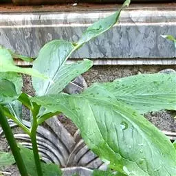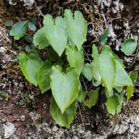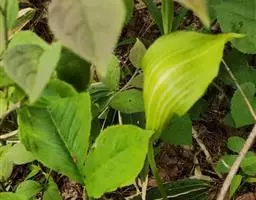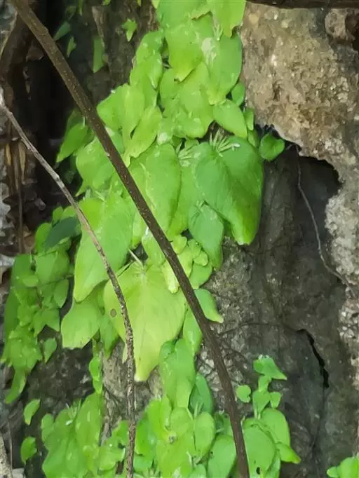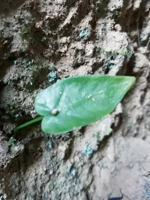 滴水珠(学名:Pinellia cordata N. E. Brown)是天南星科半夏属植物。块茎球形、卵球形至长圆形,长2-4厘米,粗1-1.8厘米,表面密生多数须根。叶1,叶柄长12-25厘米。幼株叶片心状长圆形,长4厘米,宽2厘米。花序柄短于叶柄,长3.7-18厘米。佛焰苞绿色,淡黄带紫色或青紫色。花期3-6月,果8-9月成熟。