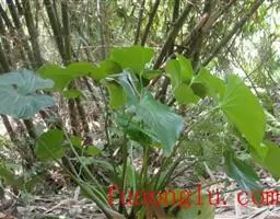 栽植:选择海拔在50-200米的地块,在地块上挖栽培穴,栽培穴横向间距为85厘米,栽培穴纵向间距为90厘米,选择2年生胸径为2-3厘米的母竹栽至栽培穴内,向栽培穴内回填土至高于原土面13-15厘米,压实后,浇足定根水;在栽培穴之间的空地上施洒腐殖土,将腐殖土与山土拌合后做垄,每条垄的垄高均为20厘米,垄宽均为60厘米,垄长均为80厘米,每条垄上挖取5个定值穴,选择当年生直径为0.6-1厘米的滴水珠块茎做种,移栽至定值穴内,浇足定根水。