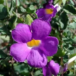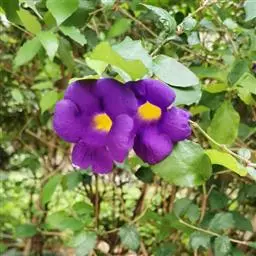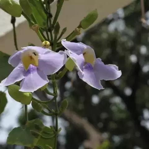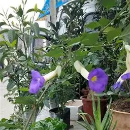 爵床科山牵牛属多年生常绿灌木,植株高2-3米,分枝多,枝条较柔软,幼茎四棱形,绿色至深褐色。蓝吊钟抗性强、病虫害少、管理粗放、分枝多而繁茂,且耐修剪,花期又长,花形奇特,花色为较少见的蓝紫色,故很适合作盆栽观花植物及庭院布置。也可作花蓠和植物造型。