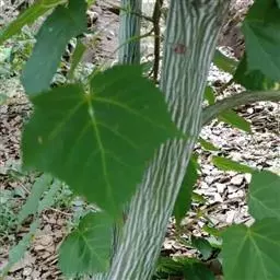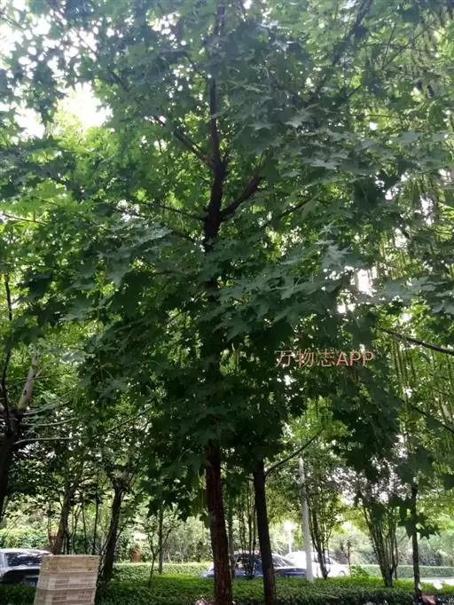 落叶高大乔木,高10-20米,稀达25米。树皮平滑,黄褐色或深褐色。小枝圆柱形,无毛,当年生枝绿色或紫绿色,多年生枝黄绿色或黄褐色;皮孔黄色,圆形或卵形。冬芽近于卵圆形或球形,紫褐色,鳞片覆叠,钝形,外侧无毛,边缘纤毛状。叶纸质,基部近于心脏形或截形,叶片的宽度常大于长度,常宽10-18厘米,长9-16厘米,常3裂,稀3裂或不分裂;裂片钝尖,裂片中间的凹缺钝形;上面深绿色或黄绿色,嫩时有稀疏的腺体,下面淡绿色,除脉腋有黄色丛毛外、其余部分无毛;主脉5-7条,在下面显著,侧脉和小叶脉均在下面显著;叶柄圆柱形,长7-10厘米,无毛或嫩时近顶端部分稍有短柔毛。