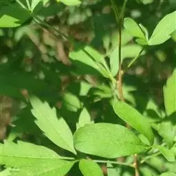 落叶灌木,罕为小乔木,高1.5-5米,有香味;小枝四棱形,密生细柔毛。通常三出复叶,有时在侧枝上可有单叶,叶柄长1-3厘米;小叶片卵形、倒卵形或倒卵状长圆形,长2.5-9厘米,宽1-3厘米,顶端钝或短尖,基部楔形,全缘,表面绿色,无毛或被微柔毛,背面密被灰白色绒毛,侧脉约8对,两面稍隆起,小叶无柄或有时中间小叶基部下延成短柄。