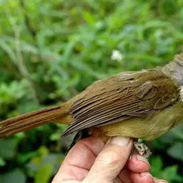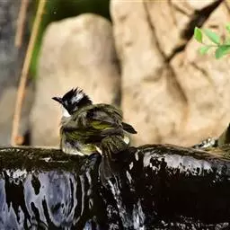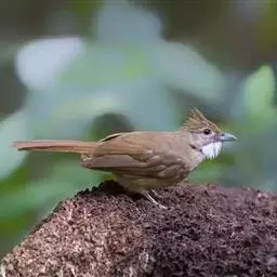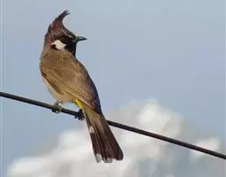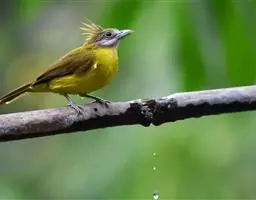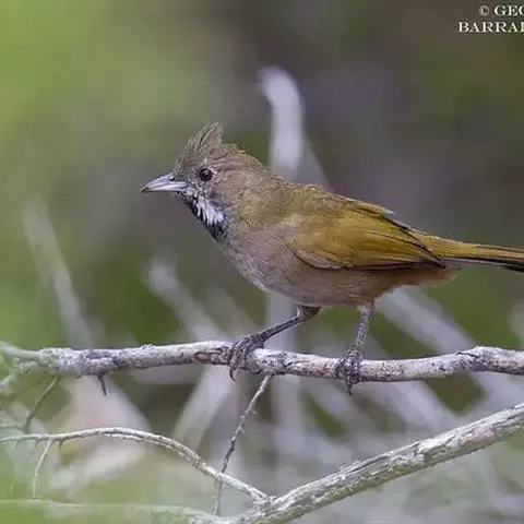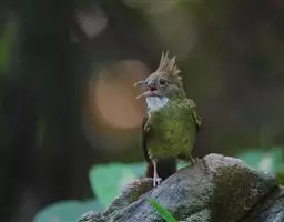 白喉冠鹎:体长20-25厘米。头顶红褐色,有长而细的羽冠、红褐色,头侧灰色。上体橄榄绿黄色,…