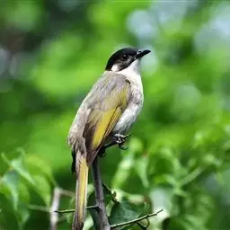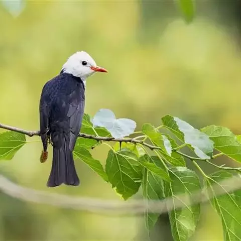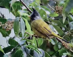 黑头鹎(学名:Brachypodius atriceps ):体长17厘米。是一种中等体型的偏黄色鹎。特征为头辉黑、喉黑而眼蓝。上体黄橄榄色;两翼及尾偏黑,具明显的黄色尾端;下体绿黄色。另一罕见色型为灰色,尾缘白色。与黑冠黄鹎的区别在无羽冠且尾端黄色。虹膜浅蓝色;嘴黑色色;脚深褐。
