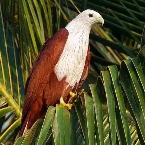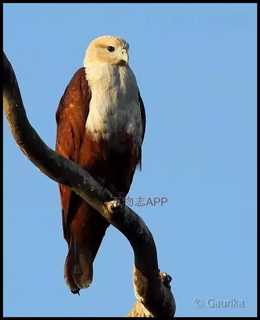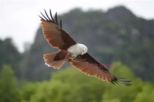 栗鸢(学名:Haliastur indus):又叫红老鹰,为中型猛禽。体长36-51厘米。虹膜为褐色或红褐色,头、颈、胸和上背白色,其余体羽和翅膀均为栗色。主要栖息于江河、湖泊、水塘、沼泽、沿海海岸和邻近的城镇与村庄。除繁殖期成对和成家族群外,通常单独活动。活动在白天。常单独在湖滨、海滨、河岸或水域与村庄上空长时间地翱翔和滑翔。主要以蟹、蛙、鱼等为食,也吃昆虫、虾和爬行类,偶尔也吃小鸟和啮齿类。