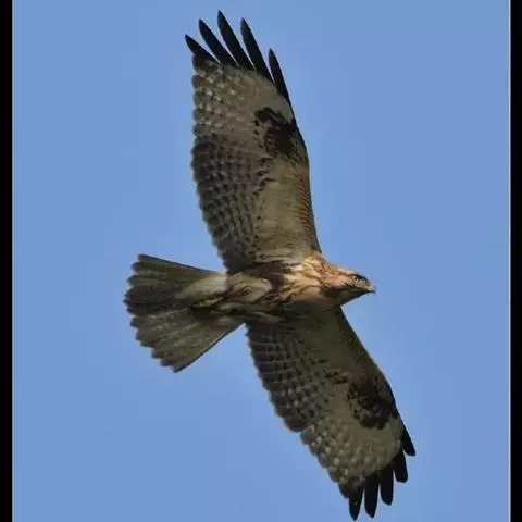 普通鵟:是鹰科、鵟属鸟类,属中型猛禽。体长54厘米,翼展122-137厘米,体重515-810克。…