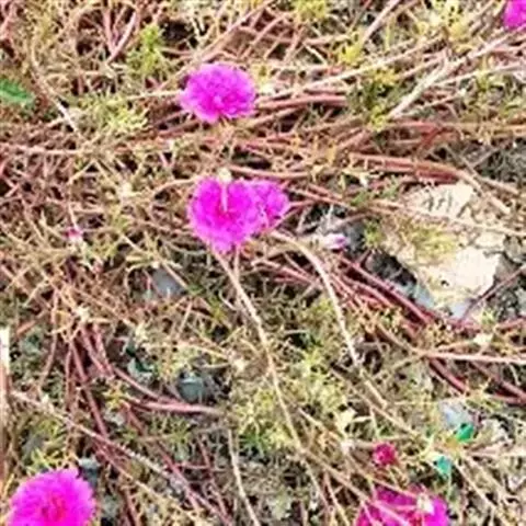 大花马齿苋:一年生草本,高10-30厘米。茎平卧或斜升,紫红色,多分枝,节上丛生毛。叶密集枝端,…