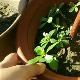 播种或扦插后15-20天即可移入大田栽培,栽培面积较小时也可直接扦插到大田。移栽前将田土翻耕,结合整地每亩施入1500公斤充分腐熟的人粪或15-20公斤三元复合肥,然后按1.2米宽开厢,按株行距12厘米×20厘米定植,栽后浇透定根水。为保证成活率,移栽最好选阴天进行,如在晴天移栽,栽后2天内应采取遮荫措施,并于每天傍晚浇水一次,移栽时按要求施足底肥后,前期可不追肥,以后每采收1-2次追一次稀薄入畜粪水,形成的花蕾要及时摘除,以促进营养枝的抽生。干旱时适当浇水抗旱。马齿苋整个生育期间病虫危害极少,一般不需喷药。