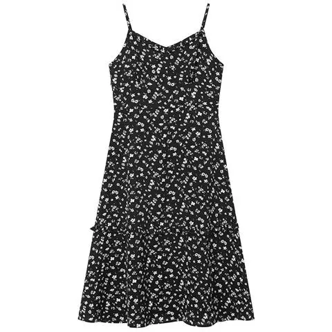 印花吊带裙