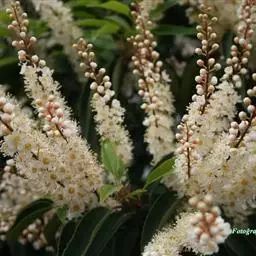 总状花序具多花,通常20-30朵,长6-9厘米,基部无叶;花梗长约2毫米,总花梗和花梗近无毛或被疏短柔毛;花直径5-7毫米;萼筒钟状,与萼片近等长;萼片三角状卵形,长宽几相等,先端急尖,边有不规则细锯齿,齿尖幼时带腺体,萼筒和萼片外面近无毛或有稀疏短柔毛,内面有稀疏短柔毛;花瓣白色,宽倒卵形,先端啮蚀状,基部楔形,有短爪,着生在萼筒边缘;雄蕊10,花丝细长,基部扁平,比花瓣长1/3-1/2,着生在花盘边缘;花盘圆盘形,紫红色;心皮1,子房无毛,花柱比雄蕊短近1/2,柱头圆盘状或半圆形。