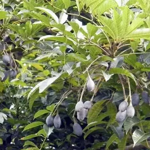 果序长8-35厘米,有果1-4个;果具长柄(长约2厘米),果萼近扁平,直径8-10毫米,果成熟时紫黑色,狭卵圆形,长3-4厘米,直径1.7-2厘米,横切面圆形至不明显的三角形;外果皮较薄,干时有细皱纹。果核横切面近圆形,核盖厚约3毫米,平滑或在中间有1不明显的肋凸。种子1-2;不育室适度退化。花期4-5月,果期5-11月。