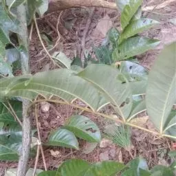 (2)大苗定植:先在土墩上面中心处挖坎,种植时根系与土壤要密切配合,主干入土8厘米深后用黄泥土回填,最后用脚轻轻踩实根部,即时浇定根水,这样可保根群须根湿润,防止根系与新鲜的动物粪便直接接触,以免引起新根腐烂。为了矮化、丰产,定植时剪除主干,保留在30-35厘米高度,最后主干稻草包扎,以防风吹日晒失水,稻草须离地面10厘米,不能与土壤接触,以免招来白蚁,这样可提高成活率。
