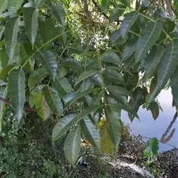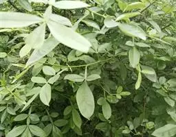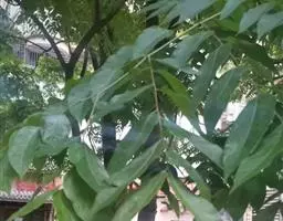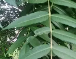乔木,高达20米,胸径达45厘米。小枝粗10毫米,干时紫褐色,髓部周围及中央有柱状维管束。无托叶。小叶4-6对,纸质至革质,无毛,宽椭圆形、卵形或圆形,稀长圆形,长6-17厘米,宽2-7.5厘米,顶端急渐尖,尖头短而钝;基部圆形或阔楔形,偏斜,全缘;侧脉(8-)11(-15)对,网脉明显。花序腋生,为疏散的聚伞圆锥花序(稀近总状花序),无毛;雄花序多花,雌花序少花。