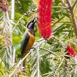习性:常呈3-5只至10多只的小群活动,冬季有时亦集成20-30多只的大群。多在灌木和小树上活动,性活泼,不甚怕人,常在树枝间跳跃,或飞翔于相邻树木间,一般不做长距离飞行。善鸣叫,鸣声婉转多变。
