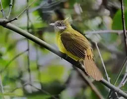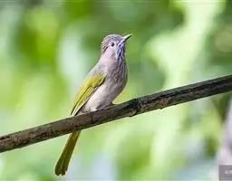 纹喉鹎:体长19厘米,是一种中等体型的偏绿色鹎。特征为头顶、脸颊、颏及喉均具黄色条纹。上体橄榄绿色。…