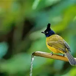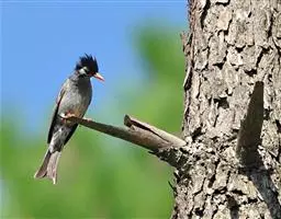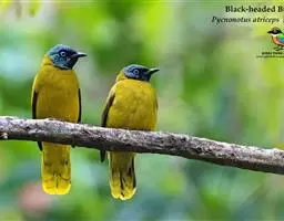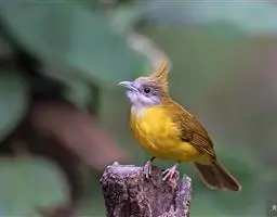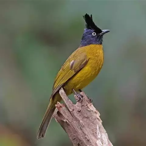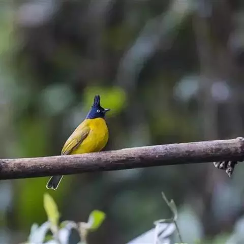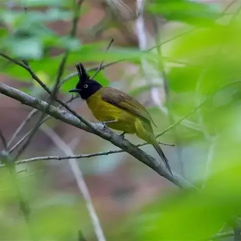 黑冠黄鹎:体长18-21厘米,是一种中等体型偏黄色鹎。整个头、颈、颏、喉黑色,头顶有显著直立的羽冠,…