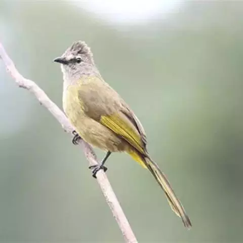 黄绿鹎,小型鸟类,体长19-22厘米。额至头顶暗褐具灰色羽缘,眼先黑色,…