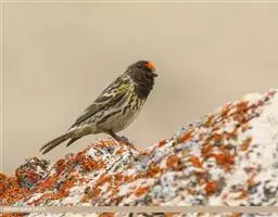 红额金翅雀:共有14个亚种。小型鸟类,体长12-14厘米。额、脸颊和颏朱红色,眼先和眼周黑色,在淡…