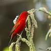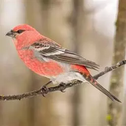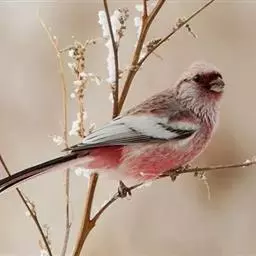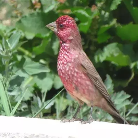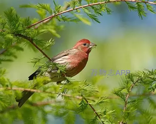 酒红朱雀小型鸟类,体长13~15厘米。雄鸟通体深红色,头部深朱红或棕红色,下背和腰玫瑰红色,…