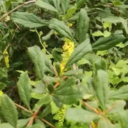 大叶小檗是小檗科小檗属植物,常绿灌木,高可达2米。老枝具棱槽,叶革质,椭圆状倒披针形,基部楔形,上…