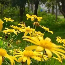 蓝眼菊的花朵在苗圃中很是普遍。繁殖方式有播种繁殖与扦插繁殖,主要以扦插育苗进行。 蓝眼菊