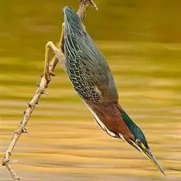 绿鹭:是鹳形目鹭科绿鹭属鸟类。体型小,头顶黑,枕冠亦黑色,上体蝉灰绿色,…